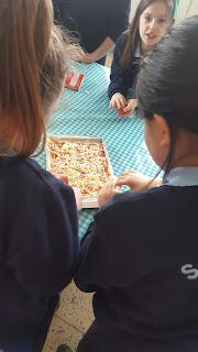 Today we made pizza rolls to finish off our Italy theme which we have been working on as part of the Blue Star S.E.S.E programme. We wrote out the method and materials needed in our copies using procedural writing. We then went to the staff room to make our pizza rolls. They were delicious!